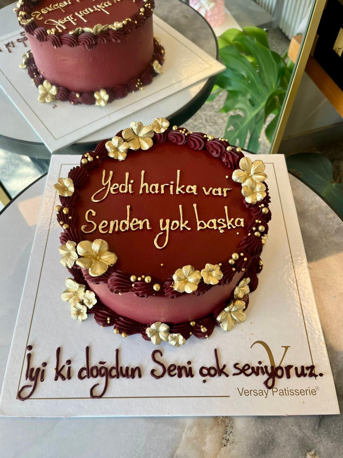 Gold Çiçekli Bordo Pasta